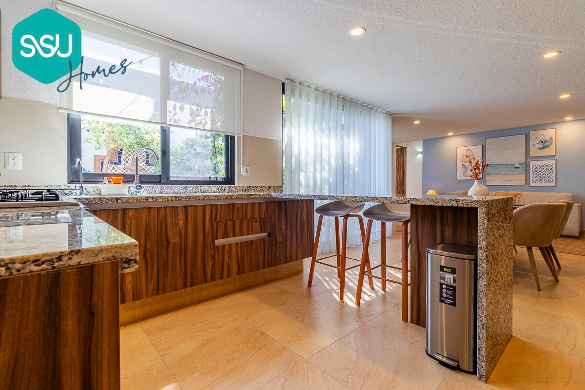 Popolnoma novo stanovanje v velikosti 160 m2 v osrčju Juriquille ponuja edinstveno izkušnjo, ki presega pričakovanja z opremo in zabavo. Če iščete vrhunsko kakovost, ne iščite več in pridite v najbolj moderno in razkošno stanovanje v Queretaru za nepozabno bivanje Apartma je oddaljen le kratek sprehod od Starbucksa, Walmarta, barov in vrhunskih restavracij, kot sta Sonora Grill in Hunger. Ima vse, kar potrebujete: udobne postelje, balkon, televizorje OLED 4K in 100-palčni domači kino, ki ga lahko gledate iz postelje.