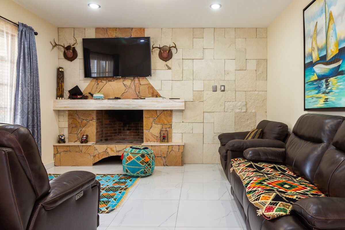 Hiša v mirni soseski z enostavnim dostopom. Hiša ima parkirišče za 2 avtomobila, 6 ločenih postelj ali 3 zakonske postelje, če vam je ljubše, in dodatno raztegljiv kavč za dodatne osebe. Ima Netflix na namizju, če se morate učiti ali delati. Električna vrata z geslom, ki omogočajo enostaven dostop do hiše, izogibajte se uporabi ključev ter najlažji izkušnji prihoda in odhoda. Dobro opremljena kuhinja, če morate kuhati in prati stroj. Obstaja več restavracij in trgovin z živili, ki so dostopne peš.