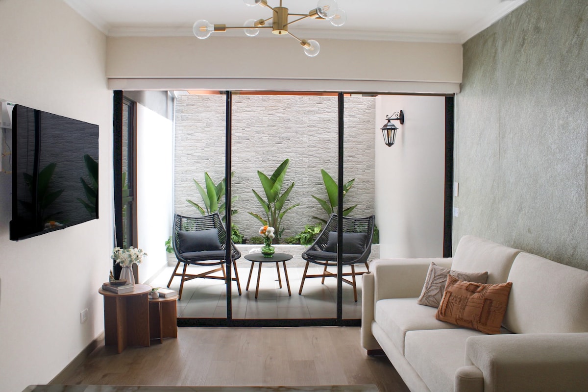 Moderno departamento en Surquillo pred San Borjo🏙️. Uživajte v osrednjem, mirnem, popolnoma opremljenem prostoru: zakonska postelja🛏️, 55-palčni televizor 📺 s pretočnim predvajanjem, hiter WiFi 📶 in popolnoma opremljena kuhinja🍴. Idealno za obiskovalce INEN 🏥(neoplastični), nakupovalnih središč 🛍️ ali okrožij, kot sta Miraflores in San Isidro 🌆. Z enostavnim dostopom do električnega vlaka 🚆 in javnega prevoza🚍 je popoln za poslovna bivanja ali počitek.