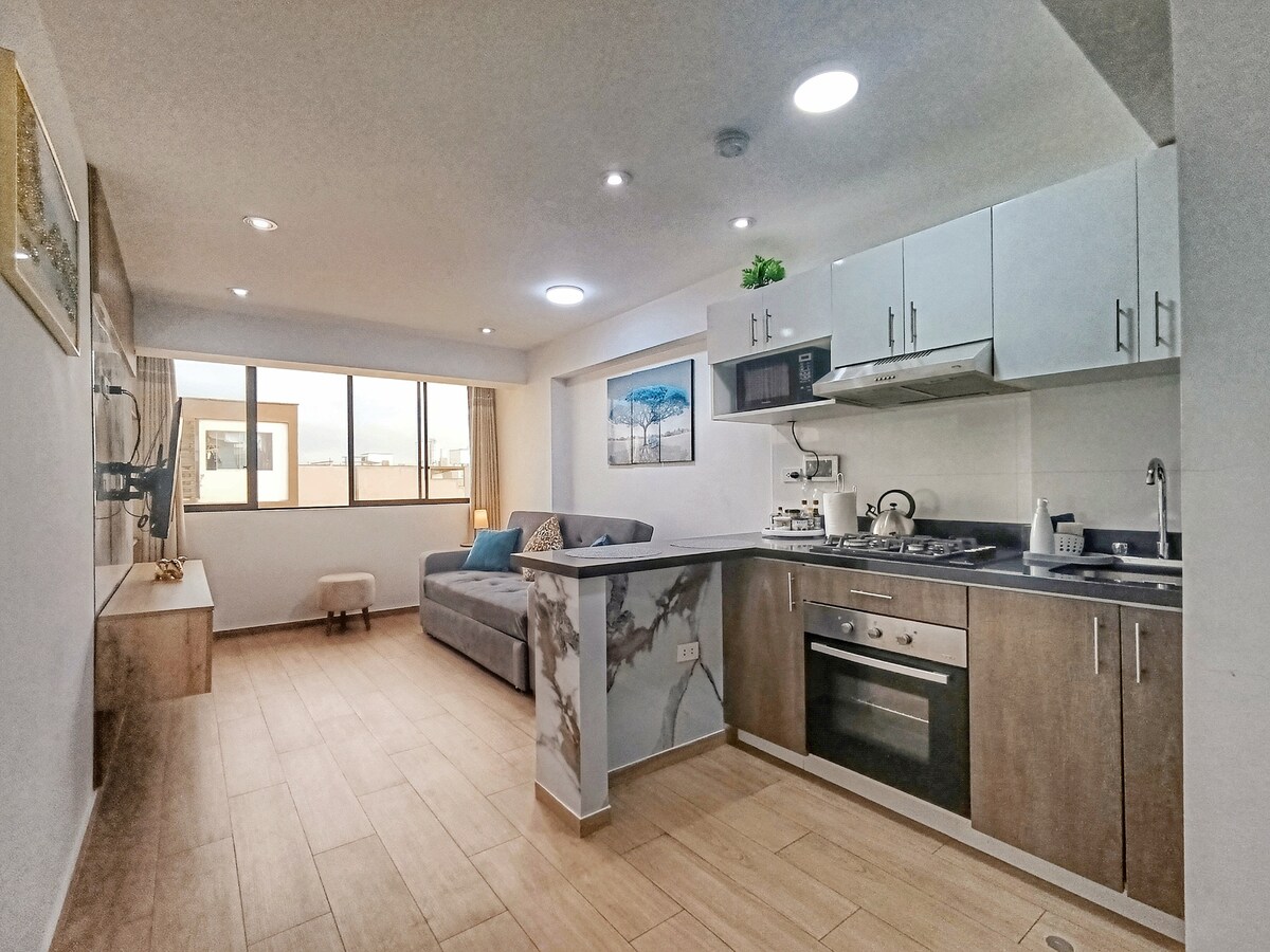 Sodobno stanovanje v soseski Miraflores – prostorno, udobno in zasnovano za vrhunsko bivanje. Njene sorazmerne sobe nudijo občutek prostornosti, imajo naravno osvetlitev, visokokakovostne zaključne obdelave in funkcionalno pohištvo. Prenočišče vključuje udobno dnevno sobo, opremljeno kuhinjo in udobno spalnico, ki je kot nalašč za sproščanje ali delo. Strateška lokacija na aveniji 28 de Julio, v bližini trgovin, restavracij in glavnih znamenitosti. Popolno za prostočasna ali poslovna potovanja. Idealno za daljša bivanja.