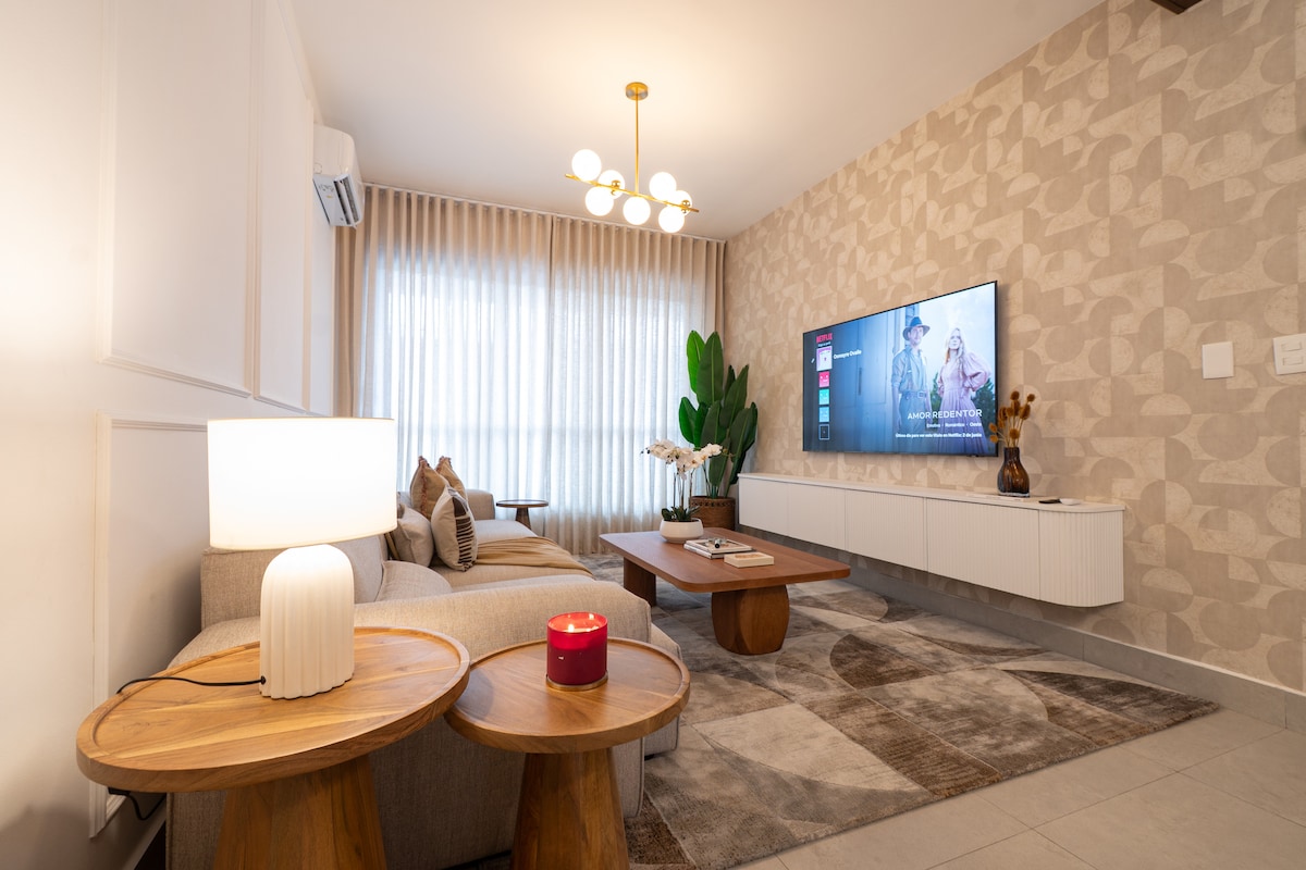 Dobrodošli v našem razkošnem prenočišču v živahnem mestu Santiago v Dominikanski republiki! Naše sodobno razkošno stanovanje se nahaja v osrčju Cibaa in ponuja popolno mešanico udobja in varnosti za vaše bivanje. Vključno z bazenom, telovadnico, zasebnim balkonom, zasebnim parkiriščem, non stop varovanjem v sklopu prenočišča in omrežjem Wi-Fi. Na priročni lokaciji, le nekaj minut stran od nakupovalnih središč, restavracij, nočnih klubov, supermarketov, bolnišnic in vrste opreme, ki zagotavljajo enostaven dostop do vsega, kar potrebujete za nepozabno bivanje.
