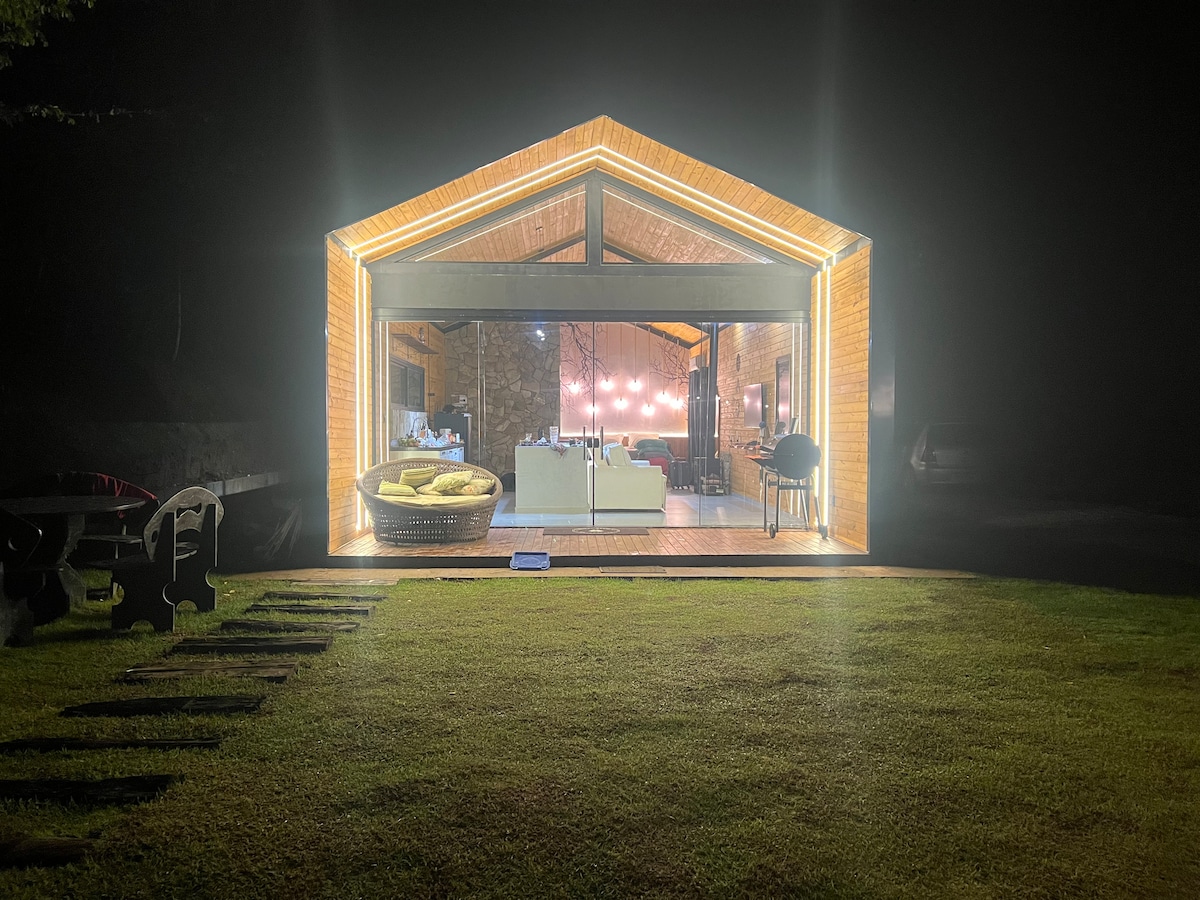 Odkrijte »Mirante da Coruja«, mirno zatočišče med krošnjami dreves, zgrajeno iz predelanega lesa Pinho de riga. Ta koča s steklenimi stenami nudi zasebnost, udobje in osupljiv razgled. Opremljen s kaminom, zasebno teraso in prostorno teraso, postane popolna kulisa za posebna praznovanja in sproščujoče trenutke, ki združuje lokalno umetniško pristnost z veličastno okoliško naravo.