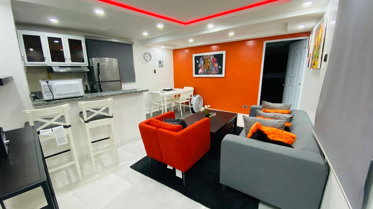 Vaš popoln oddih: jacuzzi, žar in center V osrčju Santo Dominga! Uživajte v masažni kadi ali žaru v prostoru za žar. Ima 3 spalnice in 2 kopalnici. Vsaka soba ima klimatsko napravo in ventilatorje. Uživajte na balkonu in omrežju Wi-Fi. V mirnem predelu z vsem, kar je le nekaj minut stran. Pred parkom za zabavo. Točke v bližini: * Park Mirador * Ambassador Hotel & Casino * Kolonialna cona * Bližnje plaže * Banke in trgovine z živili z dostavo na dom Veselimo se srečanja z vami.