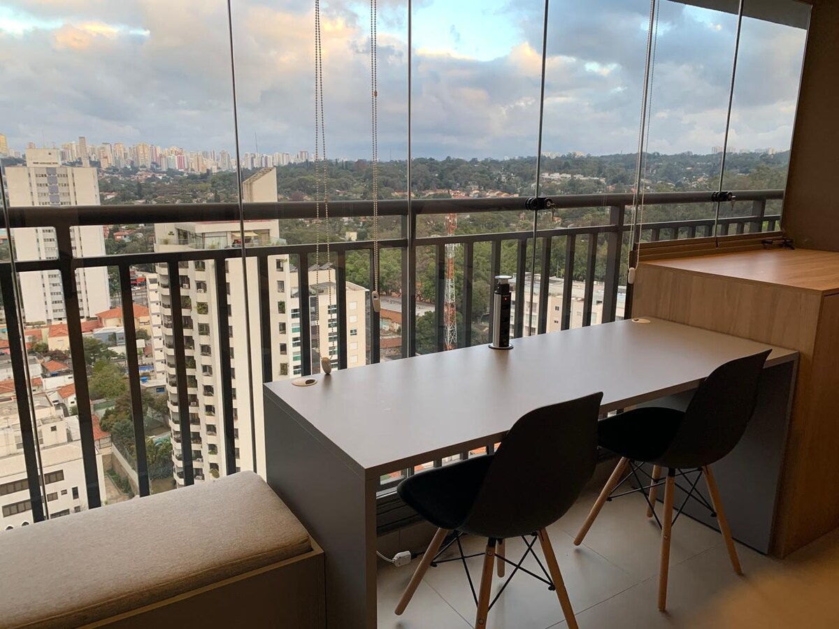 Garsonjera je opremljena z razgledom (23 m2 - 19. nadstropje). Apto se nahaja poleg postaje podzemne železnice Brooklin in 12 minut vožnje z avtomobilom do letališča Congonhas. >> V bližini krajev: . Hípica Paulista . Clínica Einstein . Ameriški konzulat >> Nakupovalna središča v bližini: Nakupovalno središče Morumbi . Nakupovanje D&D . Nakupovanje Ibirapuera . Nakupovanje JK Iguatemi >> V stanovanju boste imeli: Recepcija non stop; . Telovadnica; . OMO pralnica; . Coworking
