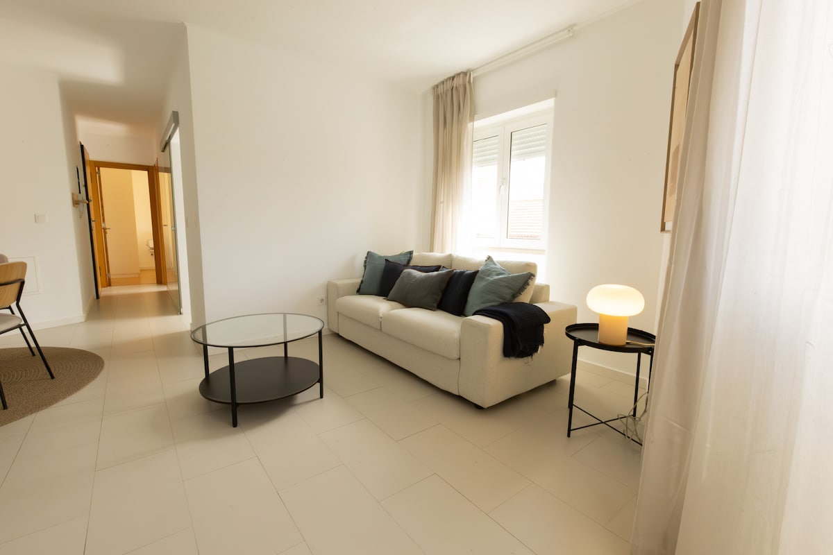 Apartamento reconstruído por arquitecto, excelente privacidade, exposição solar, com wifi, e praia a 150m. 1 suite com SPA e banho turco com aromaterapia. 1 suíte com terraço com vista mar, tela de projeção de cinema. Sala com vista de mar, rio, e terraço, onde poderá disfrutar de uma zona de estar e de um barbecue com grelha em ferro forjado. Perto de restaurantes, cafés e supermercado, e estação de comboio. Ar condicionado e piso aquecido em todas as áreas, TV 4K e box independente por suíte.