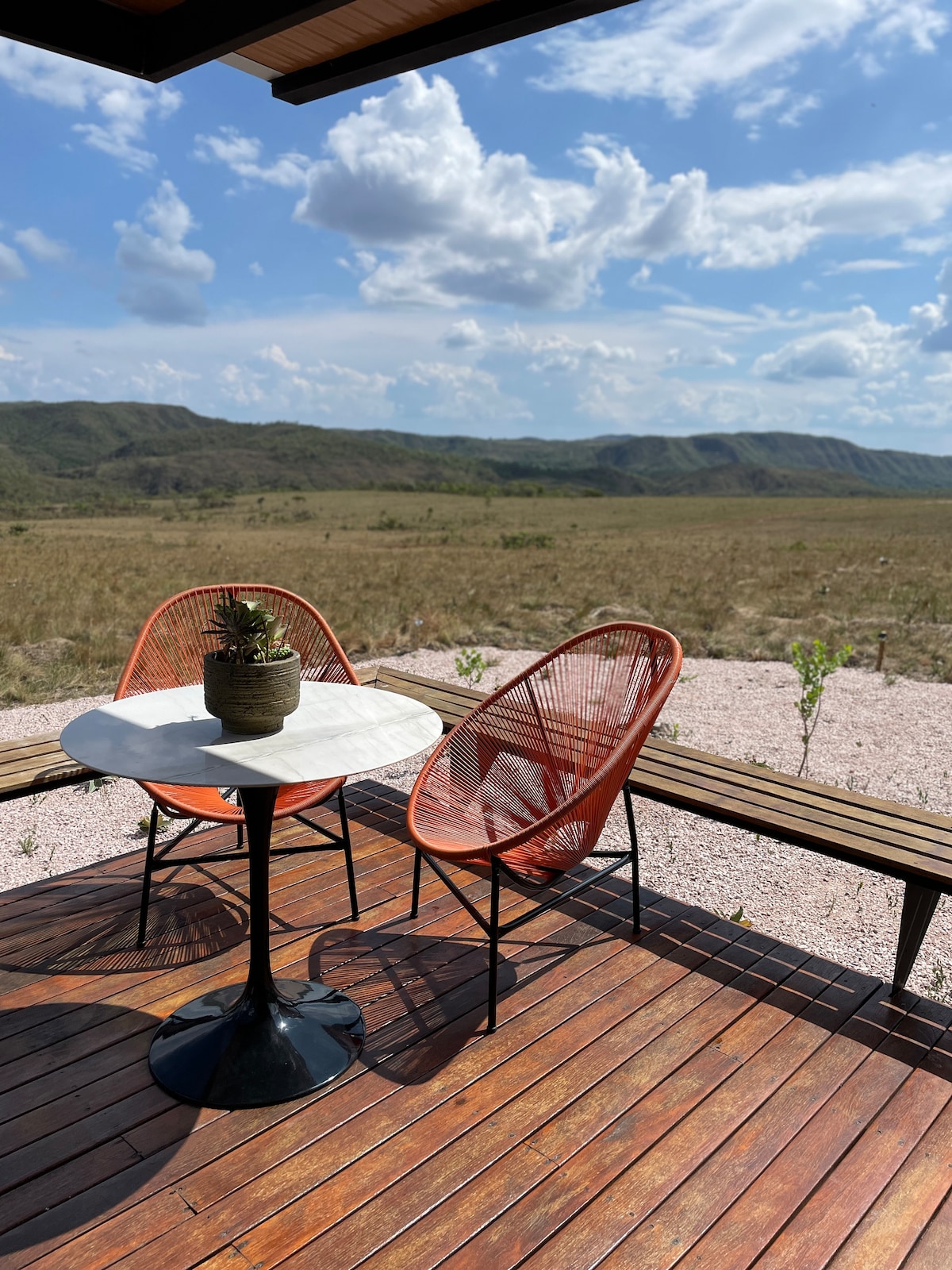 AVISTA, a unique refuge in the heart of Chapada dos Veadeiros, where nature, comfort, and inspiration meet. More than just a stay, an experience: wake up to birdsongs, sip your coffee with panoramic views, and end your day under a sky full of stars. Everthing invites you to slow down and reconnect—with nature, with yourself, with the present. Ideal for couples, creatives, solo travelers, and digital nomads. Live fully. If not now, when?