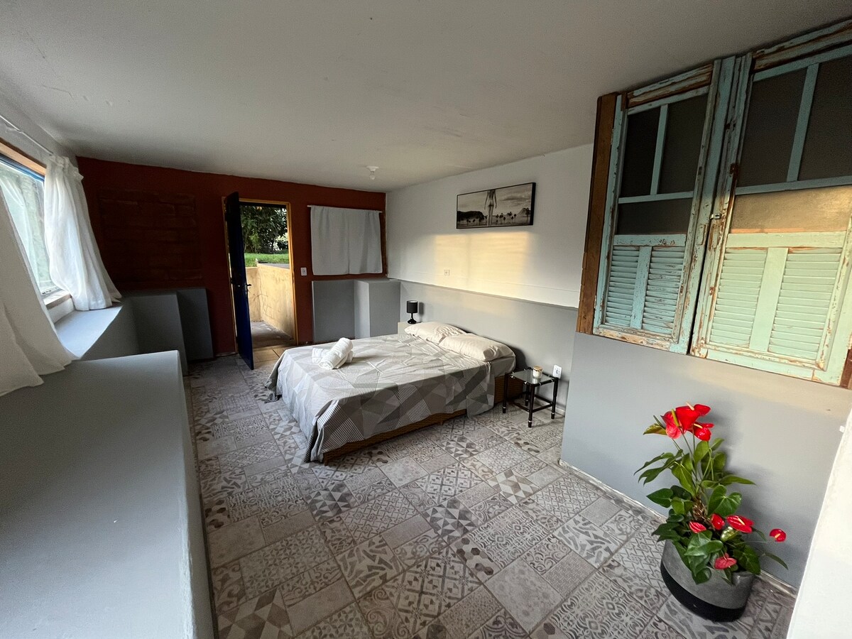 Quintal das Flores se nahaja v vasi s tremi hišami. Apartma s kuhinjo, skupnim dostopom do dvorišča in čudovitim vrtom. Za tiste, ki imajo radi mir in tišino, poleg cerkve v prvi ulici Alto Paraíso. Med bivanjem se počutite vabljeni, da se sprehodite po mestu in uživate v tišini in miru v tem majhnem kotu. *4 min hoje od centra Alto Paraíso. *Pot do Cachoeira das Loquinhas ter angelov in nadangelov.