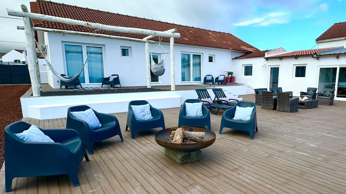 Želite živeti v kamniti hiški na deželi, rustikalno, vendar s sodobnim vzdušjem in notranjostjo, udobno, romantično, idealno za dva z osupljivim razgledom? Na pravem mestu ste, tukaj je. Na voljo je terasa z ležalniki, kamniti žar, poln razgled na otok São Jorge in kanal. Z leve strani so pečine župnije São Roque, Praínha in Santo Amaro do Pico, padajoči valovi in plavajoče ptice; sončni zahod, v katerega se boste zaljubili… Ta hiša je del majhnega družinskega letovišča, kjer je restavracija Magma, trgovina z živili, soba za jogo in ogrevan bazen. Dnevna soba ima steklena drsna vrata, ki odpirajo notranjo naravo in razgled. Kaj še čakate?