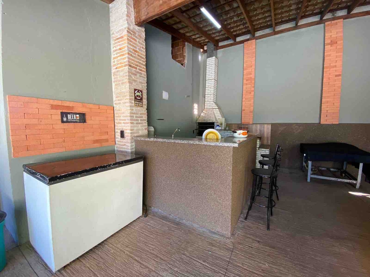 -2 neodvisni hiši sta 1 glavna hiša do drugega prostora za prosti čas s suito - Prostorni Quintal – Bazen za odrasle in otroški otok - Miza za biljard -2 kuhinji -Area Gourmet Opremljena - Kuhalna plošča s plinom in kuhinjskimi pripomočki - Kuhajte s pečico - Panele - Naprave in jedilni pribor Polnilnik zamrzovalnika Vodoravno z zamrzovalnikom -Microondas – 1 žar - leseno pohištvo, TV - Zvočnik - Wi-Fi in še marsikaj Najboljša možnost za sprostitev na podeželju tik ob mestu. Na voljo imamo parkirna mesta.