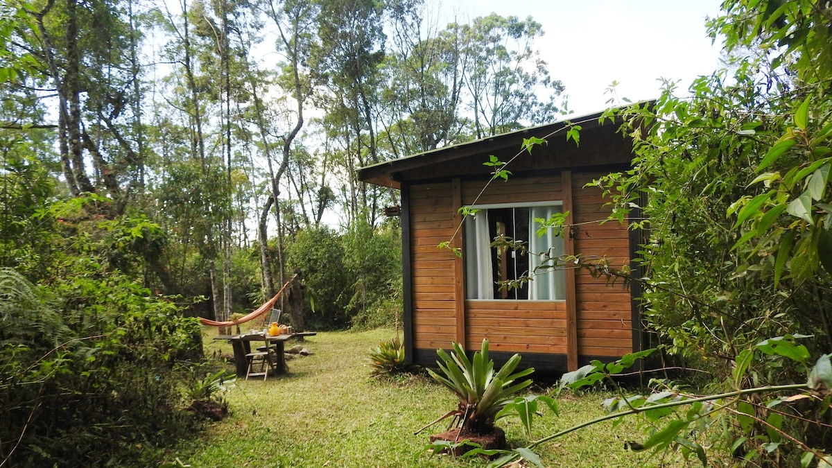 A Cabana fica dentro da Reserva Ambiental Sítio Cotinga, uma área particular, onde moramos. Está ligada ao contínuo Florestal do Parque Estadual da Serra do Mar. É um lugar singular, pois abriga uma rica biodiversidade endêmica, entre 1550 e 1650 m de altitude, além de belas paisagens. A região é remota, não há mercados e restaurantes próximos. Para chegar até a Cabana é necessário veículo alto e curto ou 4x4 (se quiser explorar a região). É uma experiência única para admiradores da Natureza!