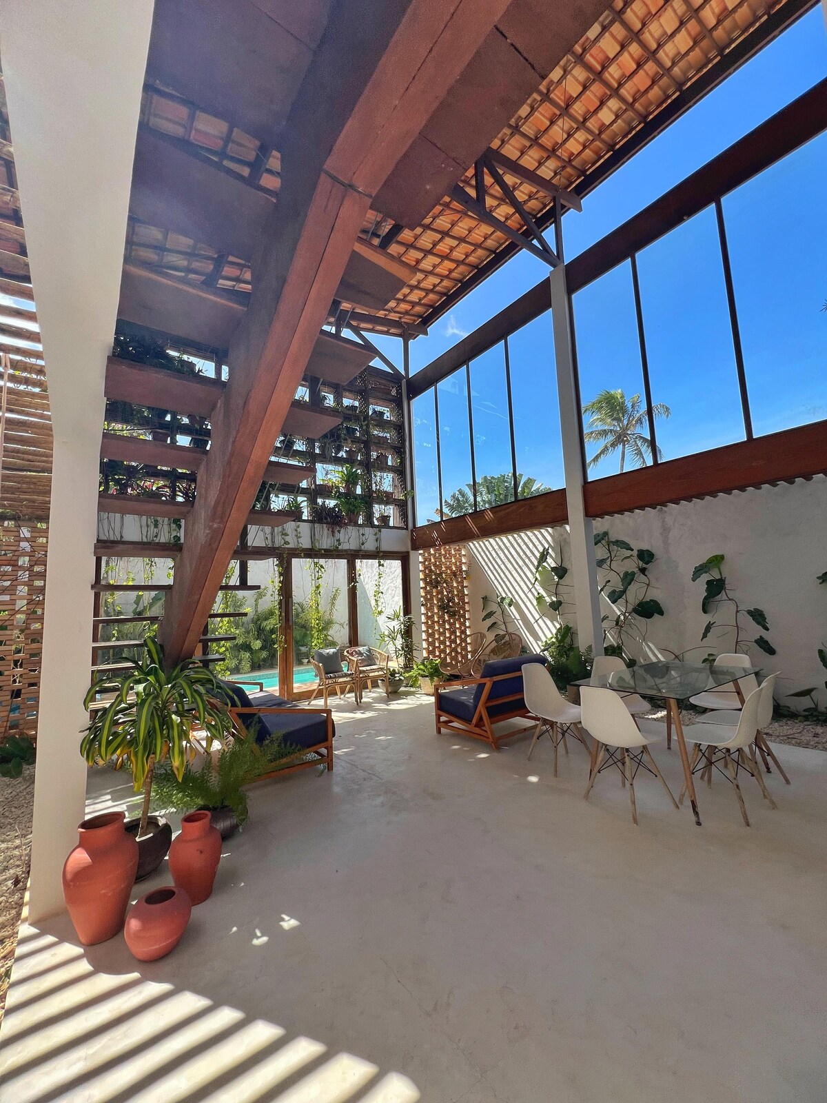 3 udobne suite, dnevna soba in kuhinja odprtega tipa, zasebni bazen, kamin, plinsko ogrevanje in internet z optičnimi vlakni. Hiša, obdana s kokosovimi drevesi, ki jo je zasnoval nagrajeni atelje Branco, izstopa po skrbno zasnovanih vrtovih kaktusov mandacaru in prefinjenem dekorju. Nahaja se v ekskluzivnem stanovanju s 6 drugimi hišami in 24-urnim varovanjem, le 5 minut vožnje od plaže in najboljših restavracij.