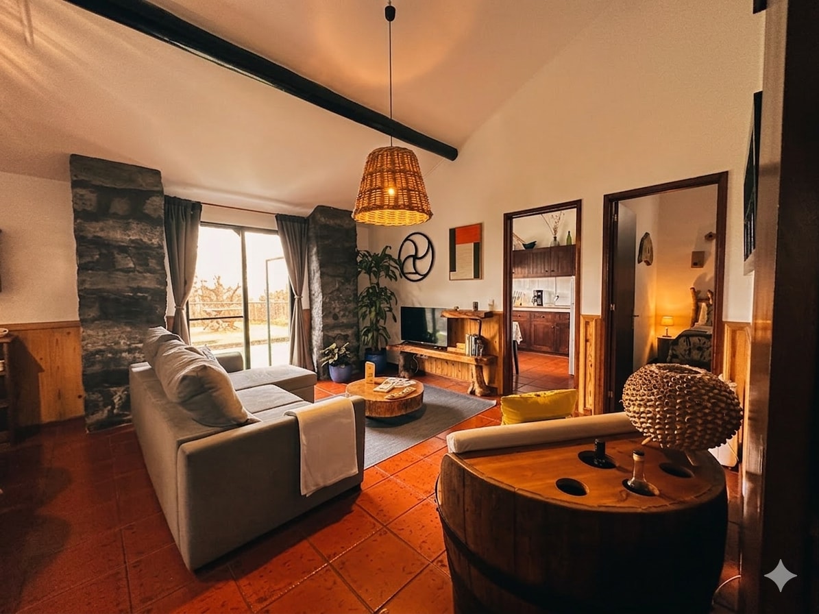 Hiša je bila nekoč vinska klet namestitve, vstavljena v rajsko ekološko kmetijo s sadnim drevjem, zelenjavnim vrtom in vinogradom ter čudovitim vrtom. Notranjost je okrašena s starodavnimi kosi volovskih in vinskih sodih, kosi, ki so bili uporabljeni v drugem času na kmetiji za različne dejavnosti. Letališče je od hiše oddaljeno 12 km, glavno mesto Ponta Delgada 9 km, več plaž pa je oddaljeno 12 km.