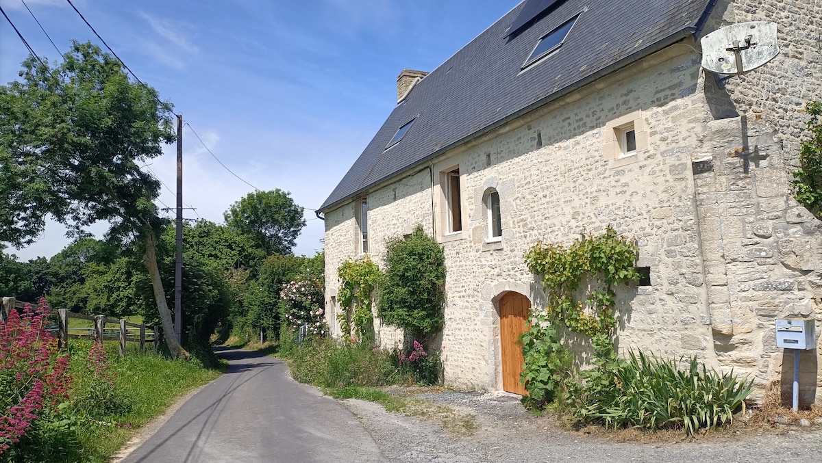 Podeželska hiša z vrtom v bližini pristajalnih plaž in mesta Bayeux. Pritličje: dnevna soba z jedilnico in dnevni prostor, opremljen s televizijo. Kuhinja: hladilnik z mini zamrzovalnikom, indukcijskimi kuhalnimi ploščami in mikrovalovno pečico Kopalnica s prho, umivalnikom in WC-jem. Tla: spalnica s posteljo za 2 osebi (190*140), nočnimi omaricami, predalnikom in stojalom za oblačila. Majhna pisalna miza. Spalnica z 2 enojnima posteljama ( 190*90), nočnimi omaricami in garderobno omaro.