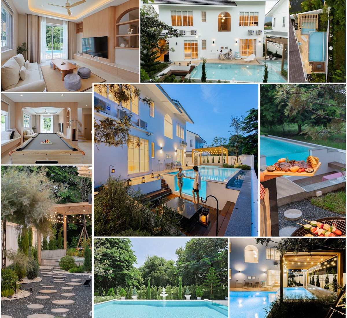 这栋充满活力的热带别墅位于清迈的黄金地段,WangTan 小区重叠机场商圈非常适合大型团体和与家人或朋友聚会。别墅配备各种设施,包括大型游泳池、按摩浴缸.可供您全方位娱乐。我们的户外可看私人湖泊的美景,地理位置优越,可轻松前往市区,靠近便利店和超级市场。我们还应要求提供餐饮和交通服务,费用由房客自行承担。 房源介绍 这是一栋现代风格的2层别墅,屋顶可欣赏私人湖泊,还有一个带按摩浴缸的大泳池。 *5间卧室*6个卫生间 *宽敞的公共区域 *配备电器的西式厨房*每个房间配备智能电视*一次性洗漱用品*茶水工作台*大型环绕式泳池露台 这栋别墅最多可容纳10人,设施齐全,让每个人都能玩得开心。优雅与安静的心灵放松之地.这里是家庭度假、商务团体和大型朋友团体的理想之选。5间卧室和6个卫生间确保所有房客的隐私。室内光线充足,与木制家具融为一体,营造出温馨舒适的环境。 公共区域通往泳池露台,露台宽敞,是一个不错的聚会场所。游泳池是一个超大泳池,大小适合成人和儿童入住。大门是遥控的,房源周围的墙壁建造得很高,以确保我们的房客拥有极致的隐私。