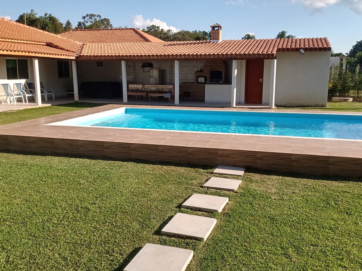 Chácara Muito bem localizada toda equipada com utensílios e comodidades, quartos e áreas recém reformadas. Tudo muito limpo, aconchegante e agradável. ** Aqui você vai encontrar 12 mil metros quadrados de área verde com: - 2 campos de futebol -Quadra de Tênis e Basquete -Pista de Bocha -Piscina -Churrasqueira e Salão Festas -Pomar -Salão de Jogos e Brinquedoteca -Lareira -Forno a lenha para Pizza -Redário -Wi-Fi Um Lugar Seguro, Murado e Privado para festas e também para descanso
