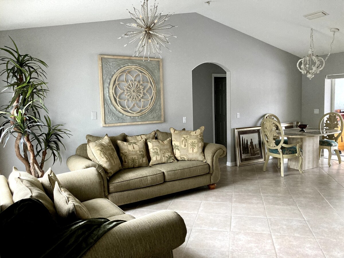 Welcome to Golf Cove Paradise ☀️ A peaceful resort style outdoor space + private + oversized solar heated pool creates a perfect vacation oasis. Covered lanai = shade. BBQ & watch your favorite sports on 55” outdoor tv. Walk the golf cart paths, swim laps, get a tan, read a book, play music & games, sip on tropical drinks & float all your cares away. Pretty sunsets overlooking a golf course setting. A.M. coffee outside to hear the birds sing. Carefree outdoor living is what it’s all about here.
