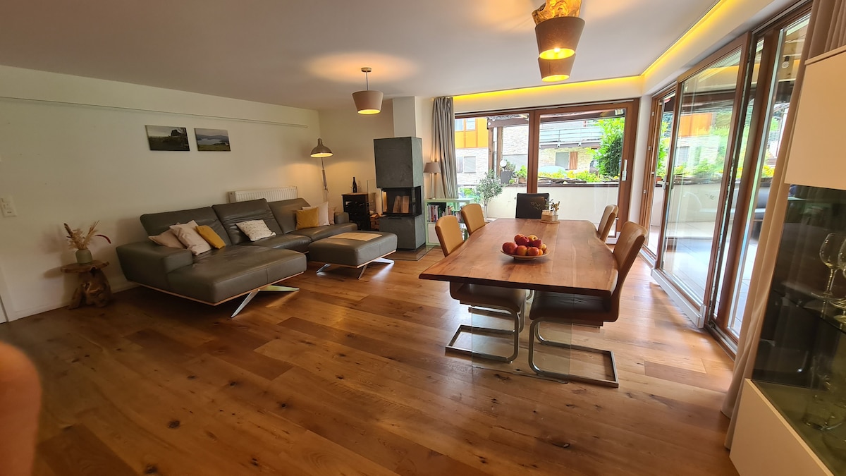 Naslonite se in uživajte v veličastnem razgledu na Churfirsten in Walensee s svojimi turkiznimi vodami iz prve vrstice. Ta prostoren apartma v penthouseu, ki se nahaja ob jezeru in 7 minut hoje od žičnice Flumserberg, ponuja vse, kar potrebujete za zimske počitnice.Preživite aktiven dan s smučanjem, deskanjem na snegu, sankanjem ali krpljanjem na Flumserbergu in se nagradite z vročo savno, sproščujočo kopeljo v masažni kadi ali prijetno pijačo s pogledom na jezero in zasnežene vrhove.
