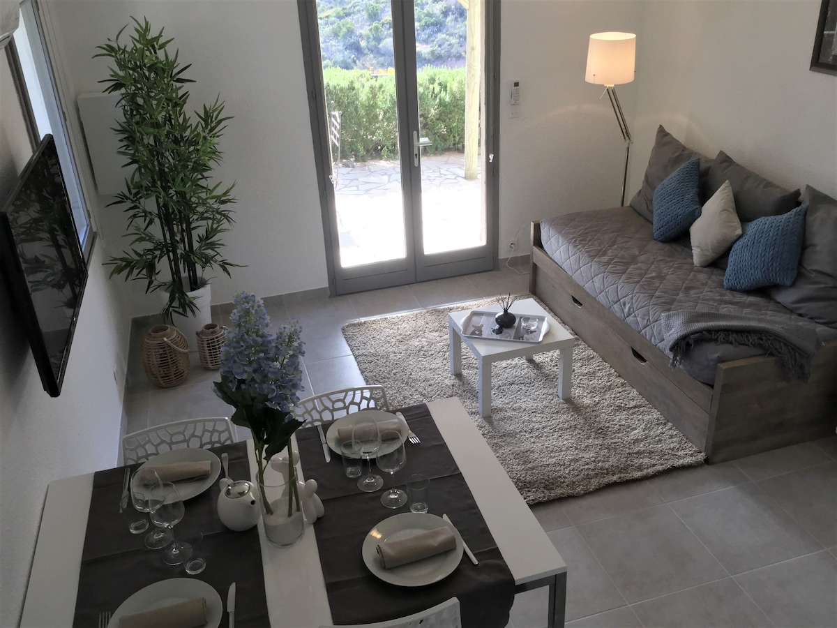 Mini-villa T2, vue mer, climatisée, wifi, plage