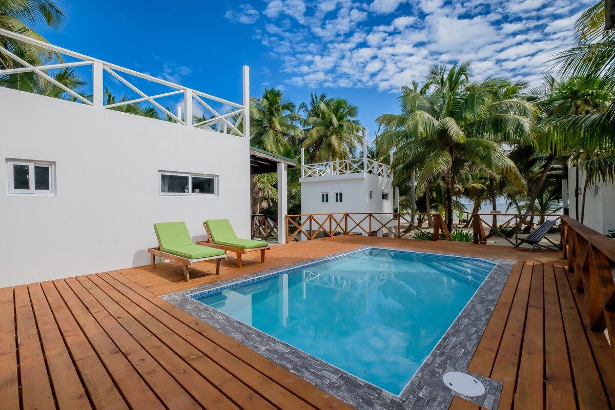 Belizean colonial wooden architecture with large balconies for unobstructed views of the Caribbean Sea and barrier reef. Located within a private 35 acre family compound and coconut plantation, four bungalows (SeaEsta, SeaClusion, SeaRenity, and SeaLaVie) were designed for total immersion in island life. Guests can enjoy peace and solitude along our 2,000 feet of beach, a perfect starting point for your Belizean adventure.