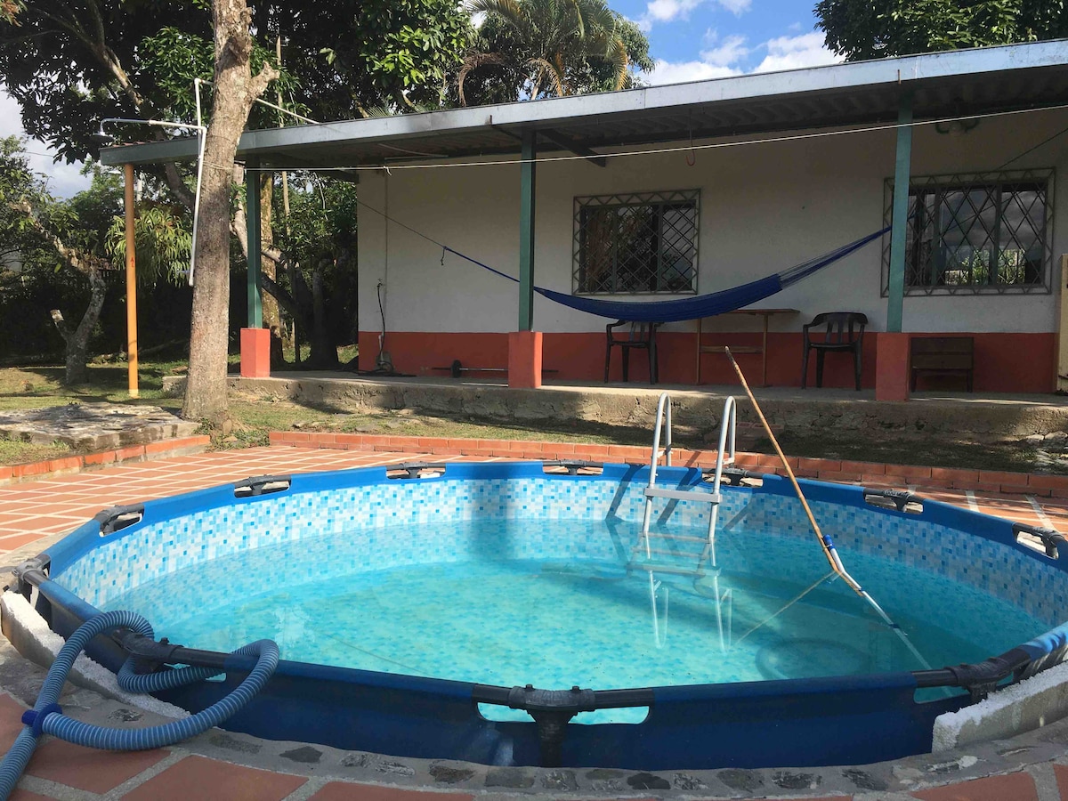 CELOTNA podeželska hiša z 20.000 kvadratnimi metri narave. Na tem območju z najboljšim podnebjem okoli Bogote. Nahaja se le 2 in pol kilometra od glavnega mestnega trga. Vse od mesta do kmetije je tlakovano. Kmetija lahko najamete z zaupanjem, saj je imela od naših gostov več kot sto trideset (130) mnenj, ki nas sčasoma ocenjujejo med najboljšimi. ZASEBNI BAZEN V BETONU. Velikost za naravno plavanje.