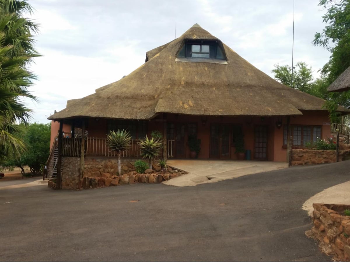 Ta samostojna hiška na deželi je 1 postelja, 1 kopalnica z bivalnim prostorom in majhno kuhinjo. Ima strešni ventilator, Wi-Fi, oborožen odziv, televizor s škatlo za Android ter lasten vhod in parkirišče. V celoti uporablja skupni bazen, braai prostore in pralnico [likanje je mogoče urediti] Ima svojo vodo in plinski štedilnik/pečico. ZDAJ VKLOPLJENA SONČNA ENERGIJA ZA NELAGODJE PRI ODSTRANJEVANJU BREMENA