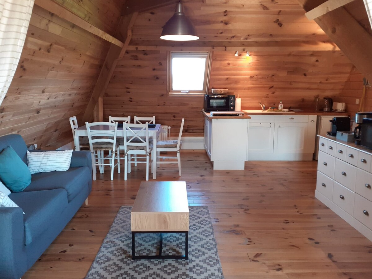 Venez vivre une parenthèse romantique dans notre lodge niché en pleine nature. Intimité, confort et ambiance cosy vous attendent. Détendez vous dans votre bain nordique et profitez du calme pour vous ressourcer et vous reconnecter à l’essentiel. Pour plus de confort, notre lodge dispose d’une literie 200x200, d’un espace détente avec mini bar (café et thé à disposition) ainsi que d’une salle de douche. Le petit déjeuner continental (produits locaux) sera déposé le matin devant votre porte.