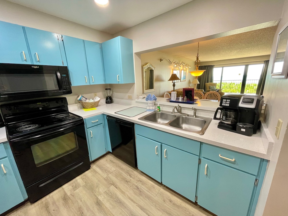 Beautiful 2 Bedroom, 2 Bath Condo on first level. Condo has a water feature and a partial pool view. Unit newly updated. New Front door, Patio Slider, paint and flooring. Condo is completely stocked for cooking your favorite meal. We love this space and the condo being so centrally located on beachside! Green Turtle grocery is just steps away from our unit. Bagle shop and a Starbucks just across the street. Many other restaurants, grocery stores and beach, just a short walk away!