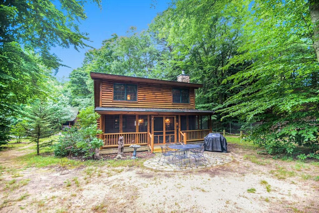 Escape to a peaceful retreat tucked in a wooded community with access to private no-wake Goshorn Lake, yet only 5 min drive to downtown Saugatuck and 10 to Oval Beach. 2 covered porches, indoor fireplace, outdoor fire pit and grill make this a perfect all-season getaway. Thoughtful layout works great for families with kids, gatherings with friends, and romantic getaways. Cabin is also next to a bike path that takes you to town (10 mins) Beach (20 mins), or Hiking (20 mins).
