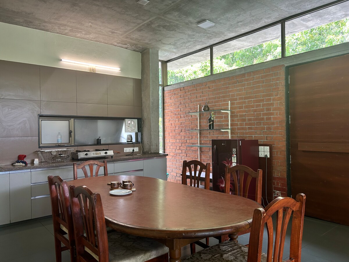 Spacious 3 BHK apartment perfect for families or groups, comfortably hosting 4-6 guests. This property has two bedrooms attached with private restrooms. The third bedroom can be used as a prayer room. The home is well-furnished with cozy bedrooms, a living area, and essential amenities for a comfortable stay. Guests have full access to the apartment, two private patios for privacy. Regular cleaning services are provided to ensure a hassle-free, relaxing experience.