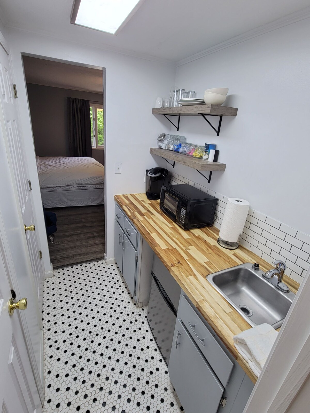 To je pritličje počitniškega stanovanja moje družine, vrata zadaj. Zgornje nadstropje ni na voljo za najem. Majhna terasa. Obrnite se na Chattahoochee, vodni park pa je tik čez reko. Pogled na parkirišče in veliko travnato polje z drevesi in reko. Ena spalnica in ena majhna kopalnica. Ni ločenega dnevnega prostora, ampak prostorna kuhinja z dvojno posteljo. Visokohitrostni Wi-Fi in pretočni televizor samo v spalnici. Ni stacionarnega omrežja.