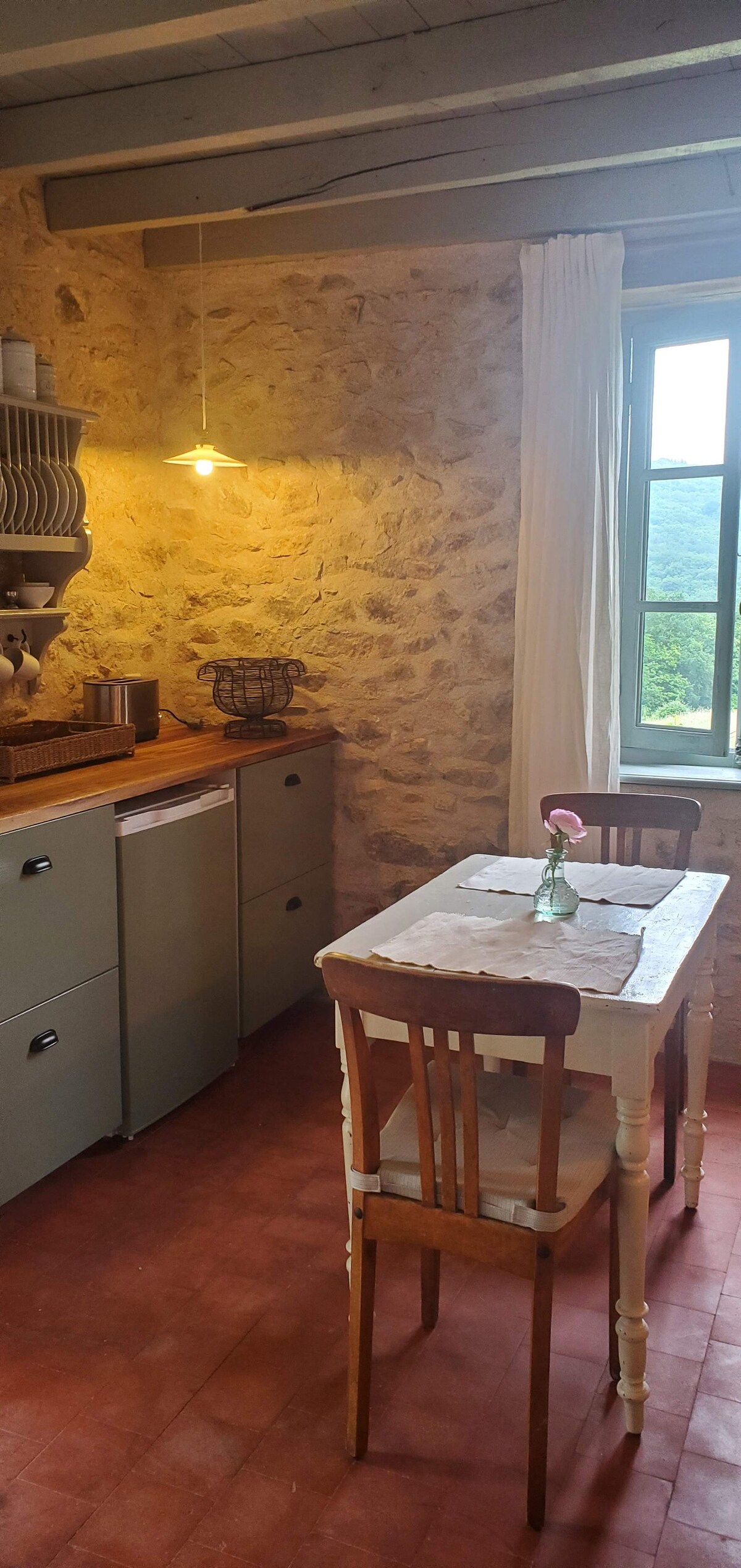 The old school/schoolmaster's house is on the edge of a tiny village where there's no shop, no café, so you’ll need a car. It's very rural here, with views across the gently undulating countryside from the school. Two small towns with supermarkets - La Machine and Cercy-la-Tour, are both about 11 kilometres away. Decize, a much larger town on the Loire, is about 18 km away. There are two double bedrooms, and another small one with a triple-layer bunk bed suitable for children.