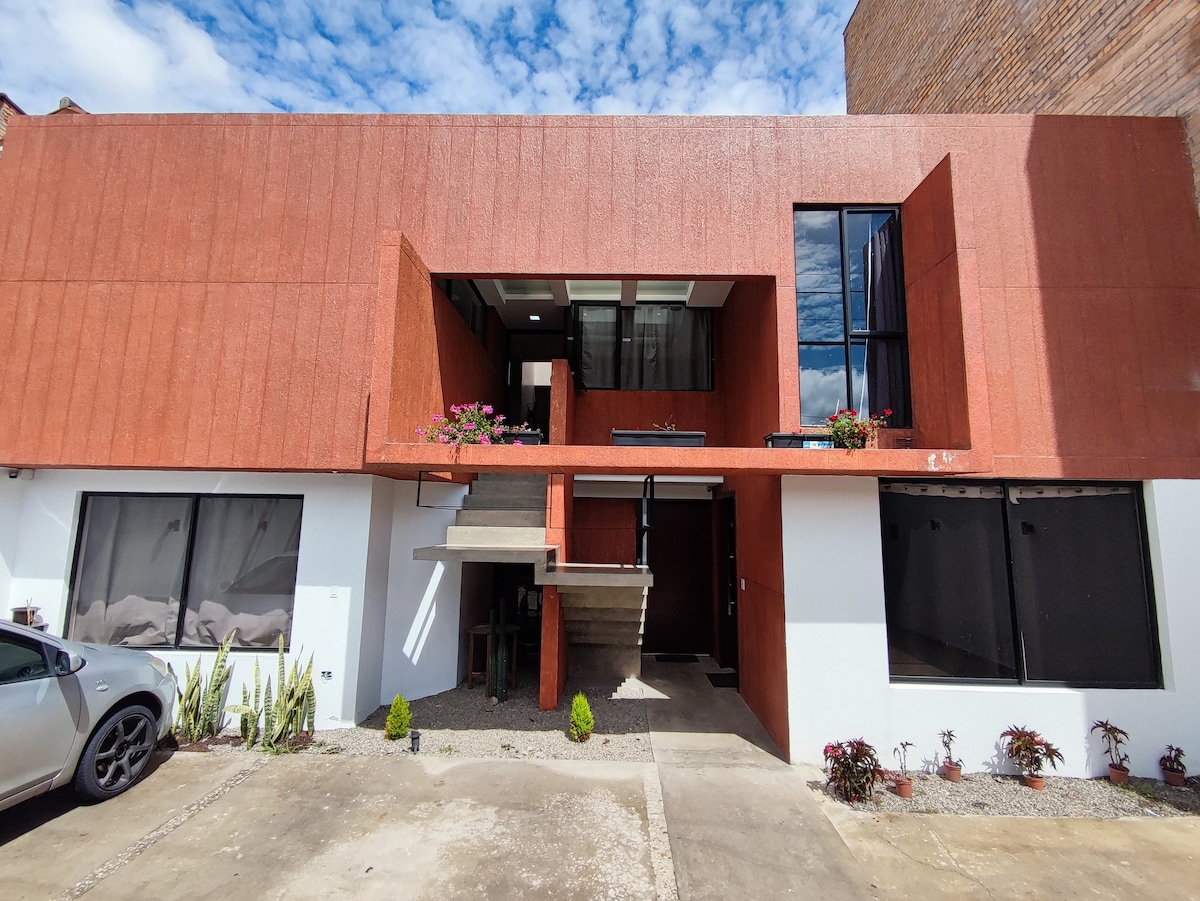 Uživajte v sodobnem in prostornem stanovanju z dvema spalnicama, eno z zasebno kopalnico in drugo s skupno kopalnico. Doživite udobje z razkošnimi zaključki, toplim vzdušjem in vsem udobjem za nepozabno bivanje. Vključuje brezplačno parkiranje. Nahaja se na odlični lokaciji, le nekaj korakov od trgovine Supermaxi na aveniji Av. de las Américas. Poleg tega ste le 15 minut oddaljeni od zgodovinskega središča Cuence.
