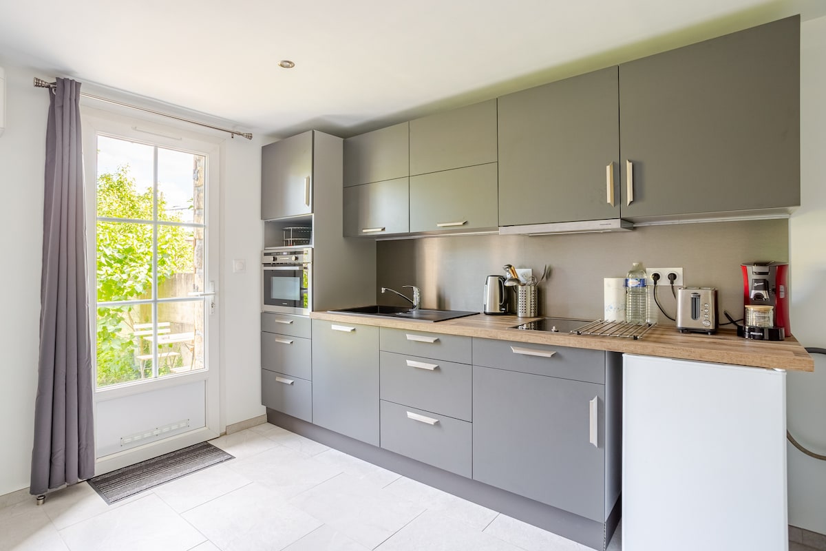 🏡 Logement T2 de 25 m² rénové en 2025, au calme et frais l’été. Entrée privative sur un jardin, séjour lumineux avec cuisine équipée et canapé convertible. 🛏️ Chambre avec lit Queen size, salle d’eau, WC séparés. Quartier résidentiel le long de la coulée verte, commerces et restaurants. 🚗 Stationnement gratuit à proximité immédiate du logement. 🚉 Transports : 5 minutes à pied (500m) de la gare "Fontenay-aux-roses" du RER B. Wifi, 🚭 non-fumeur.
