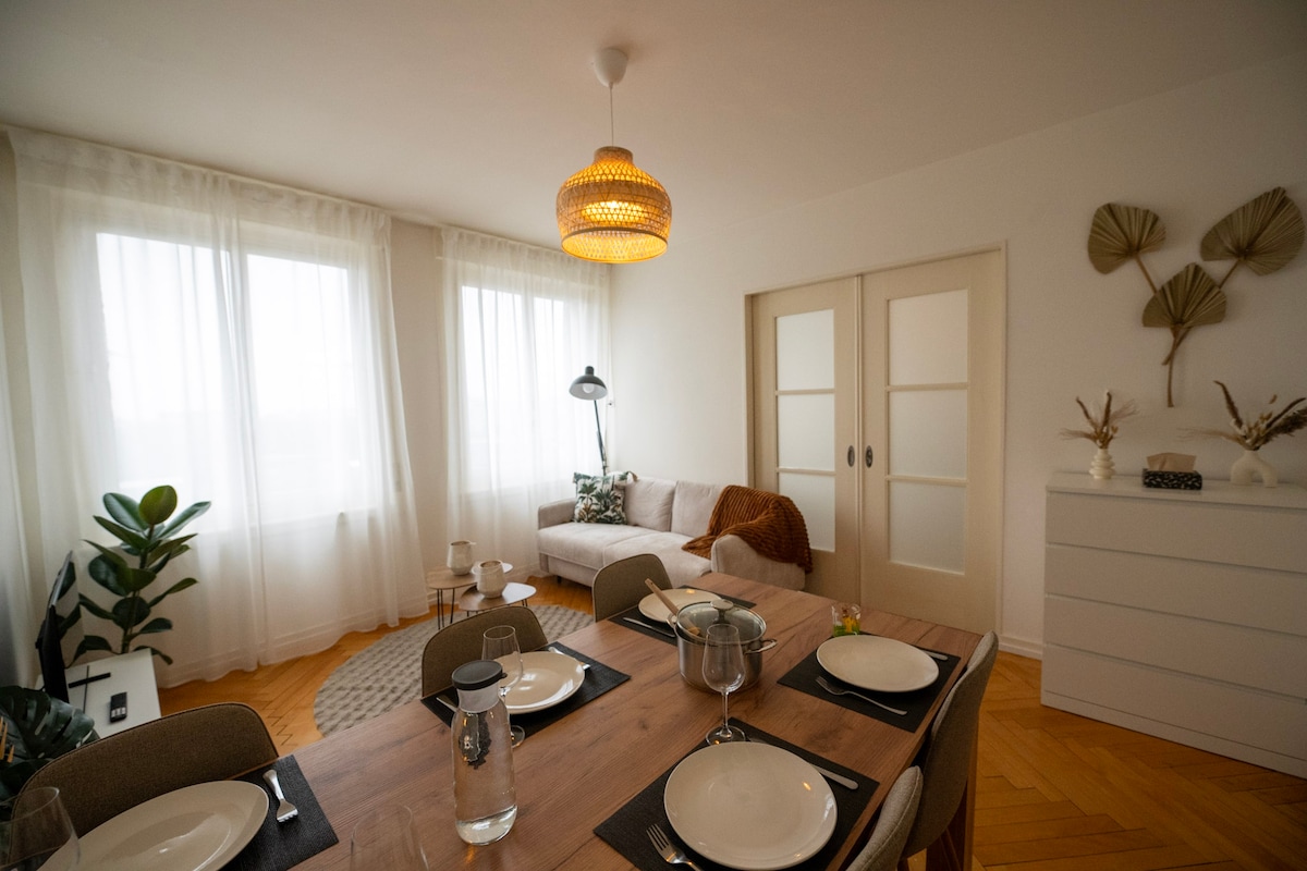 Pričakuje vas funkcionalno 3-sobno stanovanje s kopalnico in majhno kuhinjo. Skupni vrt, avtobusna postaja pred hišo (7 min. do železniške postaje/centra mesta). Sami, kot par, s prijatelji ali družino, uživajte v čudovitem razgledu na prijetnem vrtu, se sprehodite po vinogradniški poti, plavajte v jezeru in raziščite staro mesto Biel... in naj čar stare hiše vpliva na vas. V glavnem stanovanju živi eden od gostiteljev.
