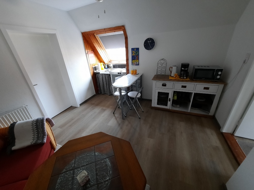 Unsere Gäste haben die obere Etage mit 90 qm für sich allein. Über eine kleine zweite Haustür gelangt man nach oben. Es gibt dort eine Wohnküche mit einem Einzelbett, ein großes Schlafzimmer mit 160 cm Doppelbett, ein weiteres Schlafzimmer mit 140 cm Doppelbett, das Kaminzimmer, einen kleinen Balkon und ein Bad mit Wanne und Dusche. Im EG wohne ich mit meinem Freund und unseren 3 KATZEN, ich kann nicht ausschließen, dass die 3 Fellbewohner Euch mal besuchen, falls ihr die Tür offen habt.