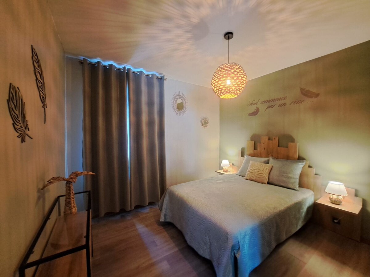 Veseli nas, da vam lahko predstavimo naše čudovito stanovanje v velikosti 60 m2 v zelo mirnem predelu sredi narave. Na eni ravni se nahaja v našem glavnem prenočišču, vendar boste imeli zasebni dostop, ki vam bo zagotovil mir Odlično za bivanje s parom ali poslovno potovanje. Uživamo v veličastni osrednji lokaciji ob vznožju Mt-Blanca, 15 km od Megève, St-Gervais ali Chamonix Najdete lahko veliko bližnjih trgovin in restavracij