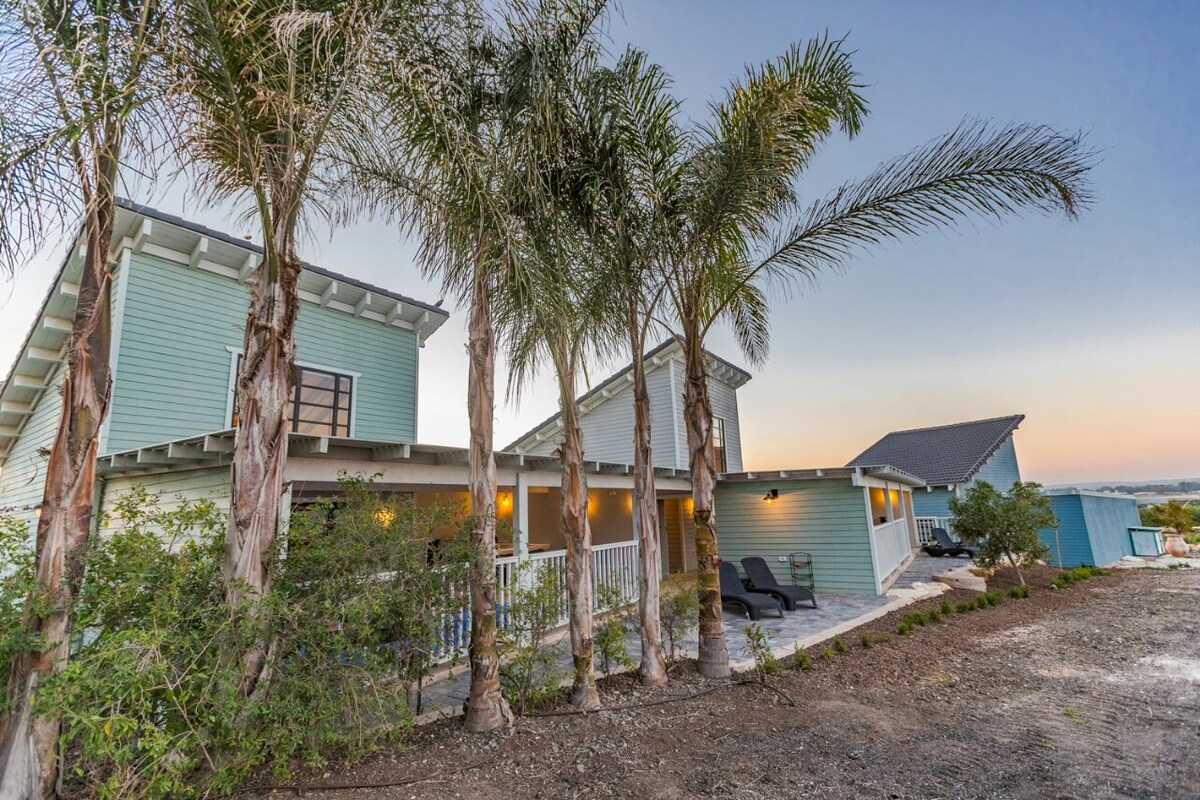 A unique rural-industrial style that blends perfectly into the agricultural moshav. This special complex offers 3 units with lots of privacy. Inside, privacy is guaranteed when there are 3 separate spaces for each cabin: a living room, a double room and a gallery, in addition to the comfortable and comfortable outdoor space. Each unit has a private pool - which contributes quite a bit to the blessed feeling of the "alone".