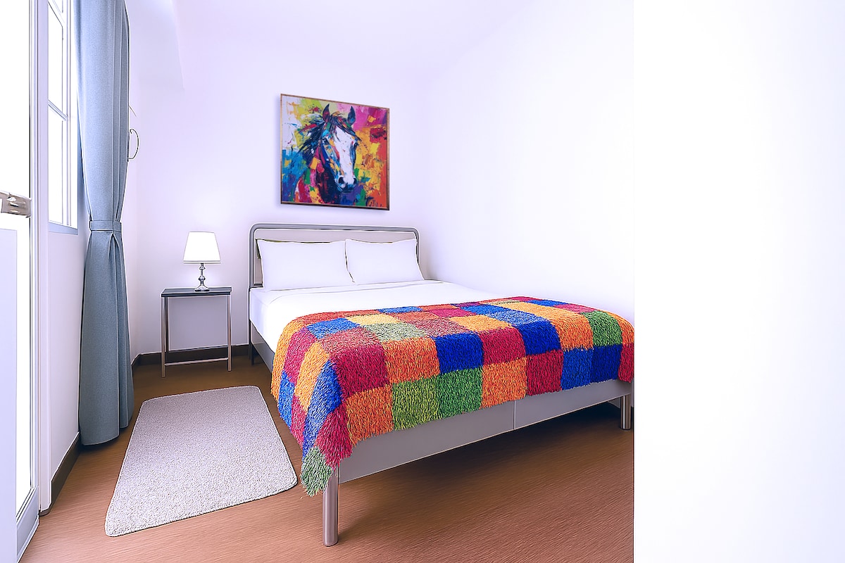 Prebudite se s tropskimi palmami in uživajte v pogledu iz postelje skozi steklena vrata. Ima zakonsko posteljo (Queen) in kakovostno orto vzmetnico, blazine in posteljnino za razkošno spalno izkušnjo. Opremljeno z vašimi osnovnimi potrebami po kuhinjski niši. 800 m od nakupovalnega središča Mall of Asia, 20 minut od letališča, gledališč, Esplanade, Z alfamartom, Starbucksom in restavracijami na tleh. Bazen je dostopen proti plačilu. Po predhodni registraciji skočite naravnost z balkona na bazen in preprosto dostopajte do enote po posebnem koraku.
