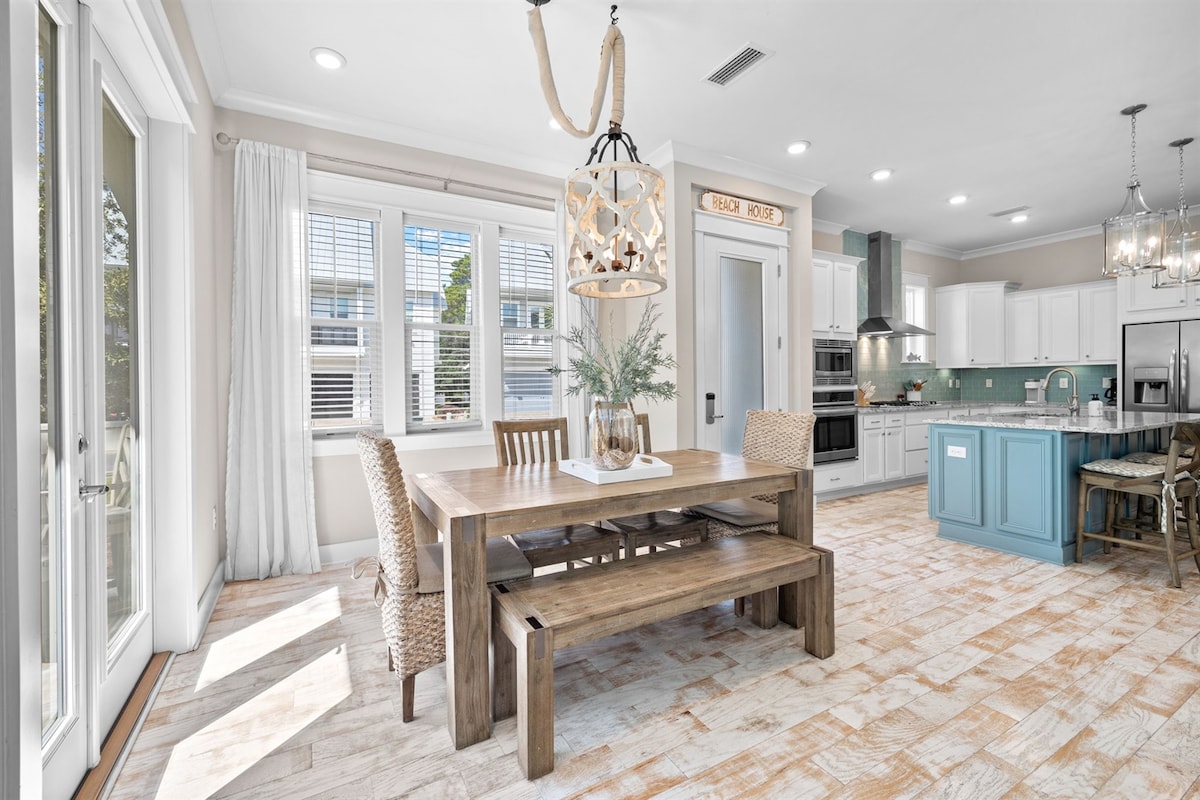 Na novo prenovljeno prenočišče Seacrest Beach z zasebnim bazenom, razgledom na zaliv in stopnicami od dostopa do plaže. To prenočišče lahko sprejme 8 gostov s 4 spalnicami, 4 ½ kopalnicami in dovolj parkirnega prostora. Prenočišče ima odprto dnevno sobo s plišastim kavčem in dodatno sedežno garnituro. Kuhinja ponuja naprave iz nerjavnega jekla, dovolj prostora na pultu in mokri bar. Na voljo je prostorno dvorišče, ki je redko na 30A. Med bivanjem uživajte v ogrevanem bazenu(50 $ na dan), zunanji jedilni mizi ali ležalnikih.