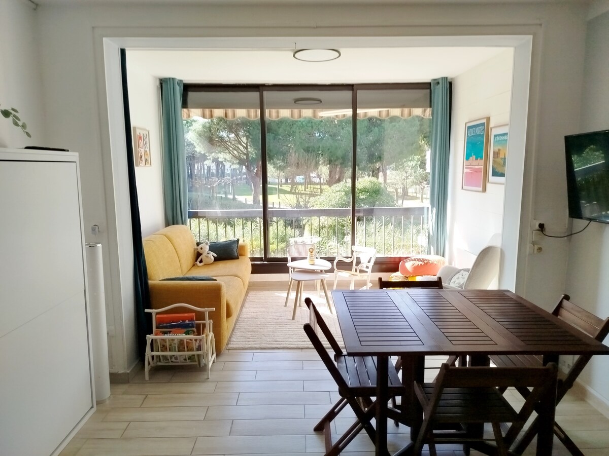 Opremljeno, klimatizirano stanovanje velikosti 28 m2, z eno spalnico in enim vrtom. Imeli boste zasebno parkirno mesto. Nahaja se na levem bregu v varnem, mirnem in gozdnatem bivališču. Sprostite se lahko na plaži, ki je oddaljena 3 minute hoje. V bližini so različne dejavnosti in trgovine, kot so Seaquarium, mini golf, različni sprehodi, trgovina, pekarna, bar, restavracija, bar s prigrizki, tobak, pralnica...