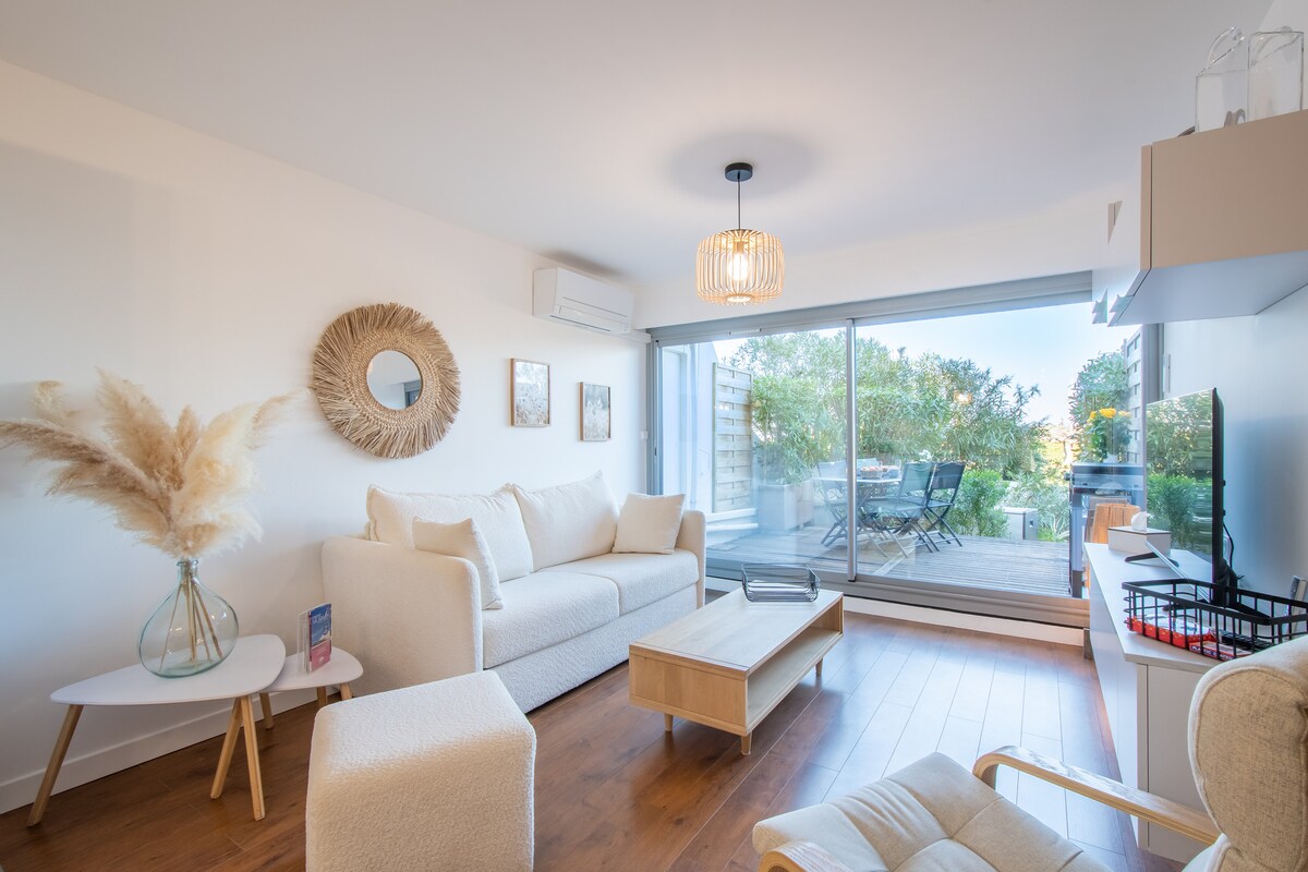 Čudovito stanovanje, ki je v celoti prenovljeno idealno se nahaja v Le Boucanetu v bližini trgovin, tržnice, kina, otroškega parka in 100 m od plaže... Uživali boste v vsem udobju z zelo dobro opremljeno kuhinjo in 12 m2 veliko teraso... Uživali boste tudi v pogledu na morje in čudoviti razstavi ... Zelo lepo z vsem sodobnim udobjem, pomivalnim strojem, Wi-Fi-jem, klimatsko napravo, pralnim strojem. Imeli boste zelo lepe počitnice.