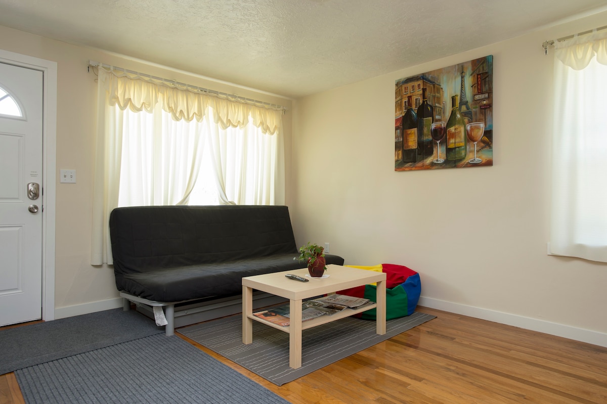 Naša udobna enosobna hiša za goste nudi udobje in zasebnost. Enota 300 kvadratnih čevljev vključuje eno spalnico z zakonsko posteljo, dnevni prostor, kuhinjo s plinskim razponom, hladilnik, aparat za kavo in mikrovalovno pečico. Dnevni prostor vključuje TV z Rokujem in številne aplikacije, v katere se lahko prijavite. Brezplačen brezžični internet za celotno bivanje. Manj kot 10 min do letališča Sea-Tac, v bližini restavracij in barov v soseski Georgetown. Pet minut vožnje do železniške postaje za hitro vožnjo v središče Seattla.
