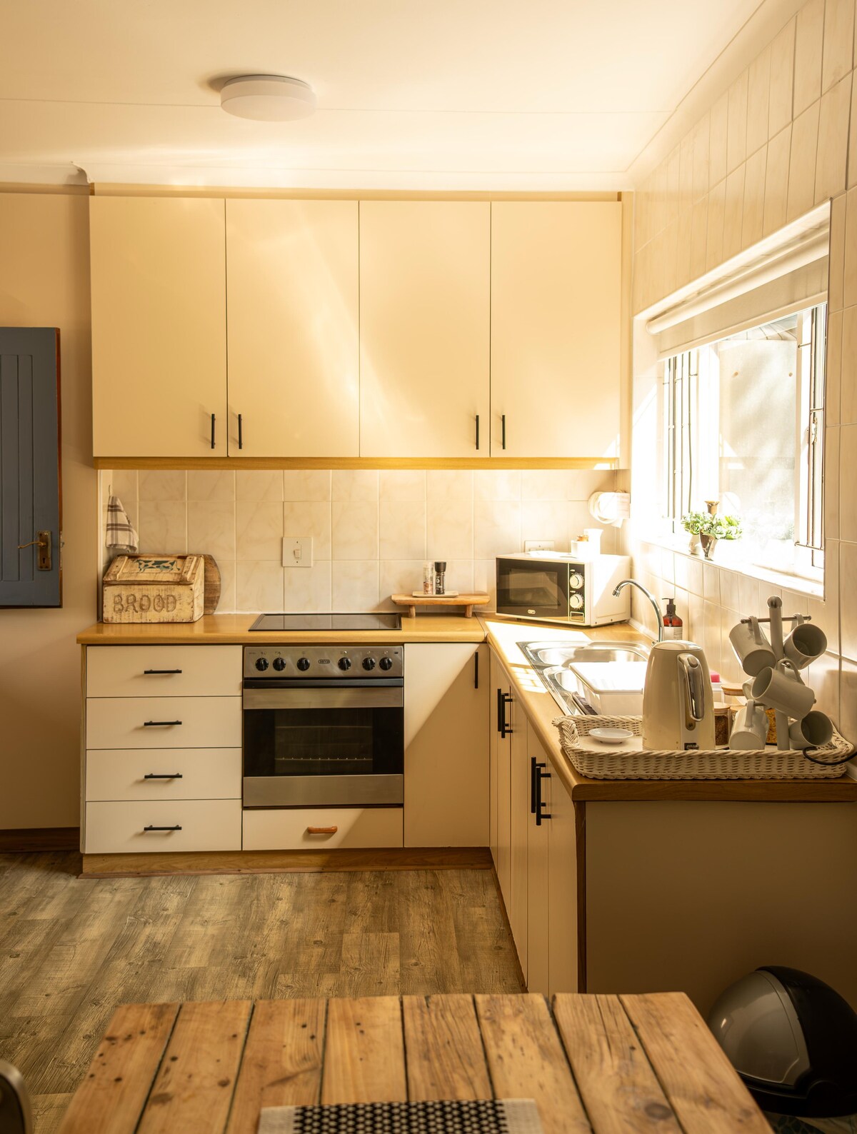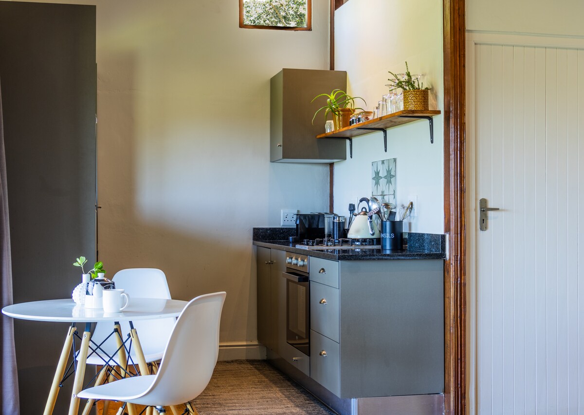 Comfortable cottage in Old Belvidere with a large Garden. Newly renovated and furnished. Ideal for a couple with kids. The garden is enclosed and well behaved pets are welcome. Inverter for load-shedding. Air conditioning in bedrooms and living room for cooling and heating as well as gas heater. Electric blanket on main bed. Space for sports equipment outside of back door. Kayaks available for guest use. Lounge has a TV with an active Netflix account. Fibre internet(25 Mbps) with WiFi.