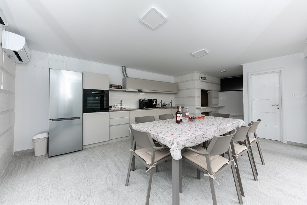 Luksuzna vila iz leta 2024 z ogrevanim bazenom in savno – sprehod do plaže Dobrodošli v svoji zasebni oazi v Kaštel Štafiliću – popolnoma novi (2024) sodobni vili, zasnovani za udobje, sprostitev in nepozabne počitnice v Sredozemlju. Vila se nahaja le 400 metrov (5 minut hoje) od plaže in le 5 minut od splitskega letališča ter ponuja popolno ravnovesje med priročnostjo in zasebnostjo. Ne glede na to, ali ste dve družini, skupina prijateljev ali pa iščete razkošen oddih v bližini Splita in Trogirja, vam bo ta hiša ustrezala.