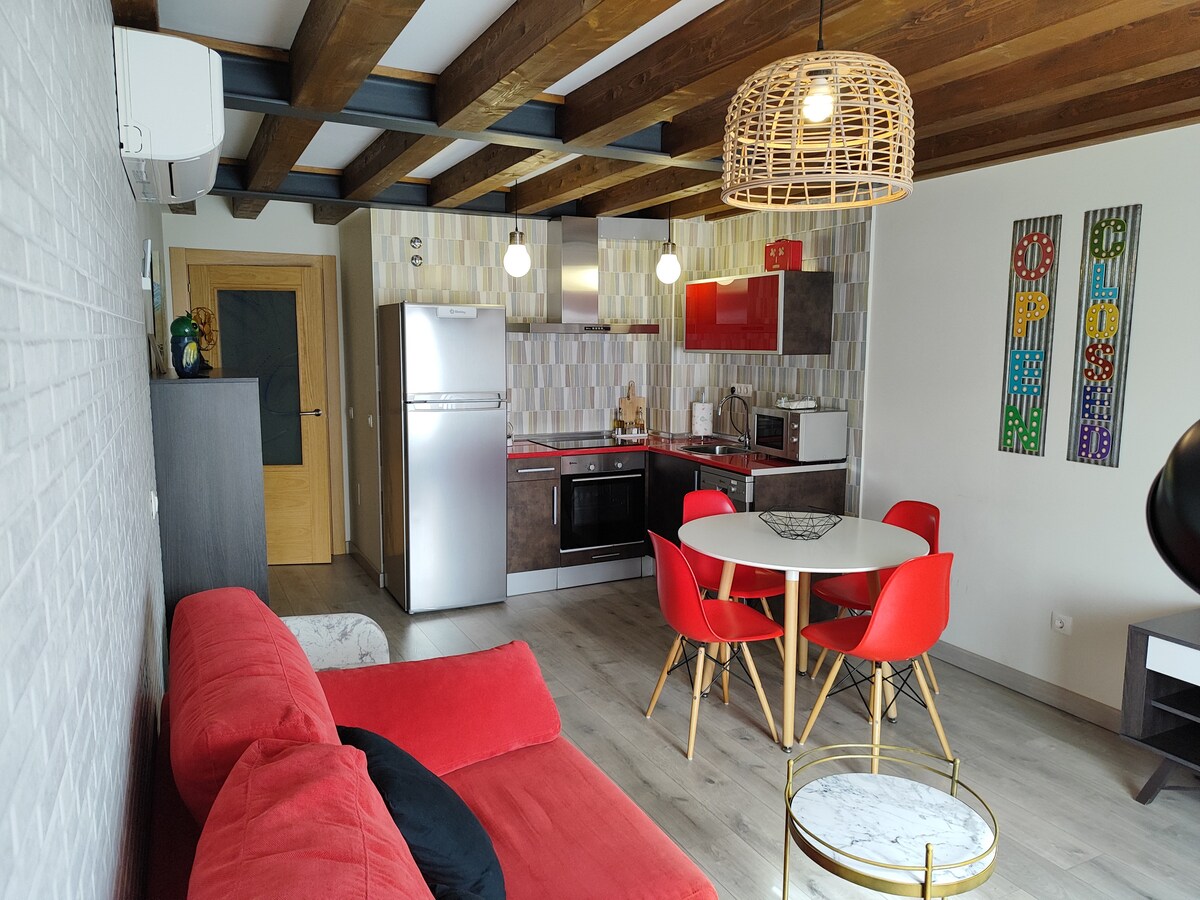 Majhen in udoben studio apartma Abuhardillado, ki je popolnoma opremljen z vsemi elementi, ki jih potrebujete za počitek in uživanje v mestu. Ima 2 zakonski postelji 135 cm in 150 cm, zasebno kopalnico, zasebno kopalnico, pametno televizijo in WI-FI, kuhinjo, opremljeno z mizo, stoli in kavčem za počitek. Možnost garaže za 10 EUR/dan (glede na razpoložljivost in predhodno rezervacijo) Kapaciteta največ 4 osebe. Možnost otroške posteljice (informacije o zahtevi)