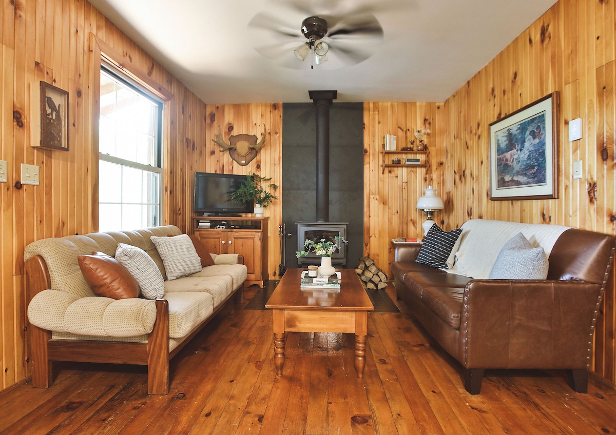 → Zasebna/velika terasa z žarom na propan + sedeži (pokrito poleti) → popolnoma opremljena + založena kuhinja → → Vključena je izjemno varna soseska: kanu, kajak, čoln za veslanje, krplje za sneg, reševalni jopiči → Vodnik s seznamom dejavnosti, zagotovljenih ob rezervaciji → Kamin/lesena → dnevna soba (jutranja svetloba) → Zasebni pomol ob jezeru → Hišni ljubljenčki so dobrodošli!