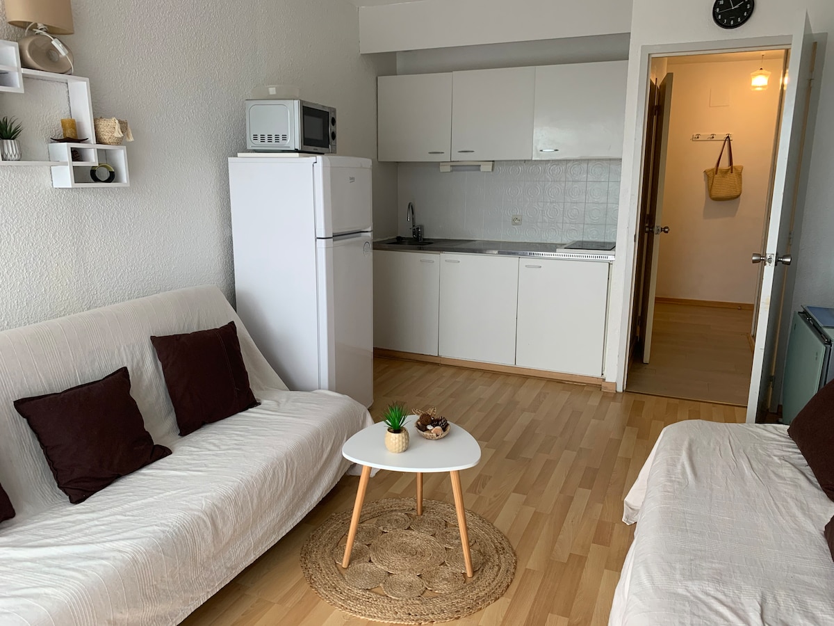 50 m od osrednje plaže Hossegor, udobna garsonjera za najem v mirnem bivališču z bazenom Idealna lokacija zaradi neposrednega dostopa do plaž, pristanišča Capbreton in jezera Hossegor Vključuje tudi vse udobje, ki ga potrebujete za popolno bivanje Garsonjera velikosti 21 m2 se nahaja v 1. nadstropju (dvigalo) in vključuje: vhod, dnevno sobo s kuhinjsko nišo, kopalnico / WC in balkon. Svetla soba Parkiranje je na voljo.