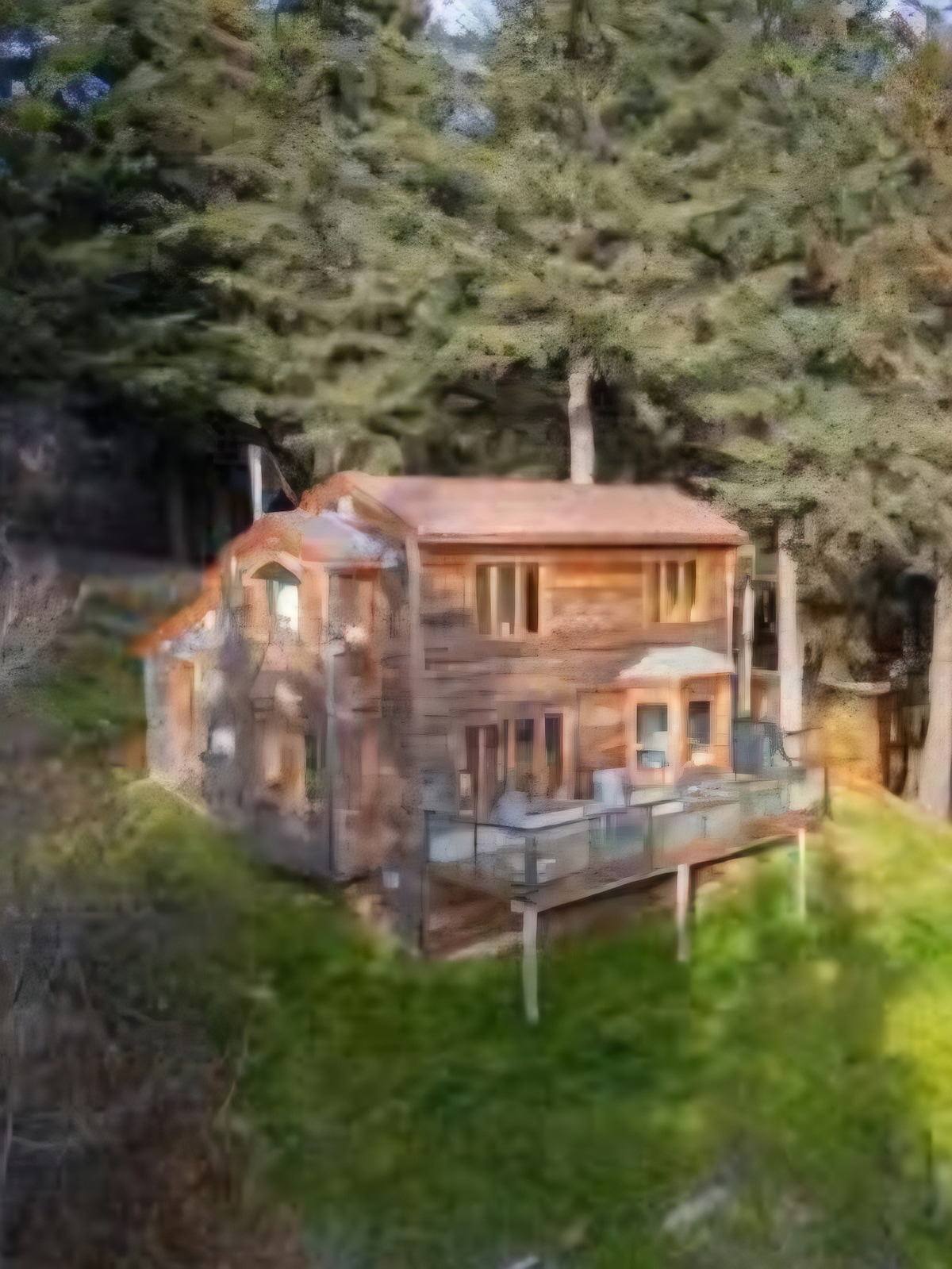 Čudovita in udobna koča v zelenem gozdu z razgledom na ledenik