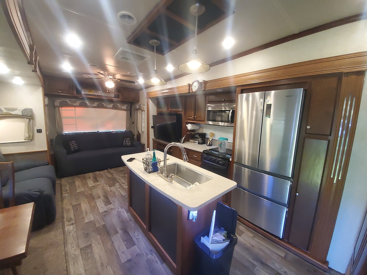 Vacation as a camper owner! Earth & Fire Place isn't just a brand new camper, with beds for up to 5 people, but a full immersion in a camper's owner experience. Pick your preferred park in the Orlando area, book your stay and we will deliver/pick up the RV at your site (service included in cleaning fees). The best and diverse way to enjoy your stay, close to Universal, Disney and many other attractions, parks and amenities of your choice. Read the description for the details!