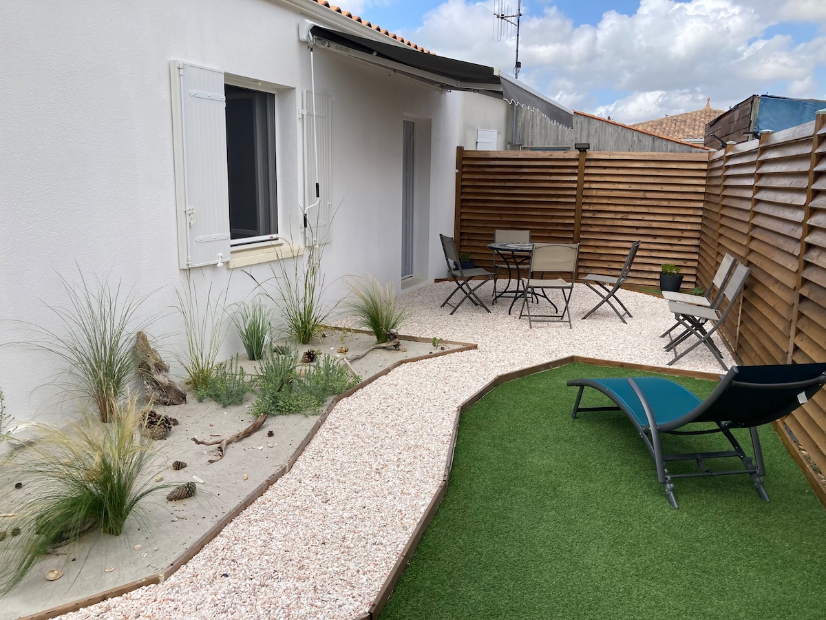 Popolnoma prenovljena hiša, ki vam bo omogočila, da preživite čudovite počitnice. Naša hiša ima 2 spalnici, kuhinjo, opremljeno z vsemi potrebnimi napravami in veliko mizo, ki lahko sprejme 8 oseb. Velika kopalnica s pralnim strojem. Terasa s pogledom na majhno roko SEUDRE zagotavlja počitek in mir. Posteljnina in brisače niso vključene v najem. V bližini: boulangerie, center ville, center de cure, plage.